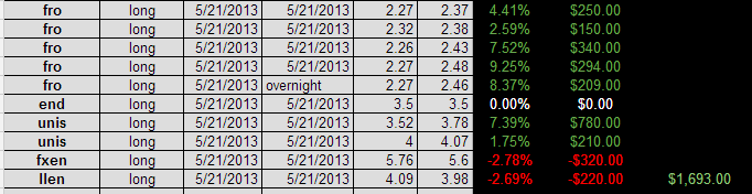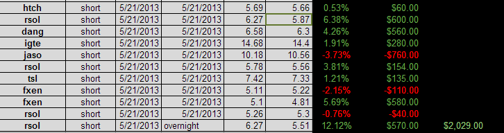 Great day for the bulls crew.. we had huge gains in $rsol $dang $fro $fxen $unis. The total in alerts for the day was $3722. Its shaping up to be another big week. The great thing about our chatroom is that the alerts are called out live on video as they are happening. The positions sizes are very manageable and we keep our losses small!