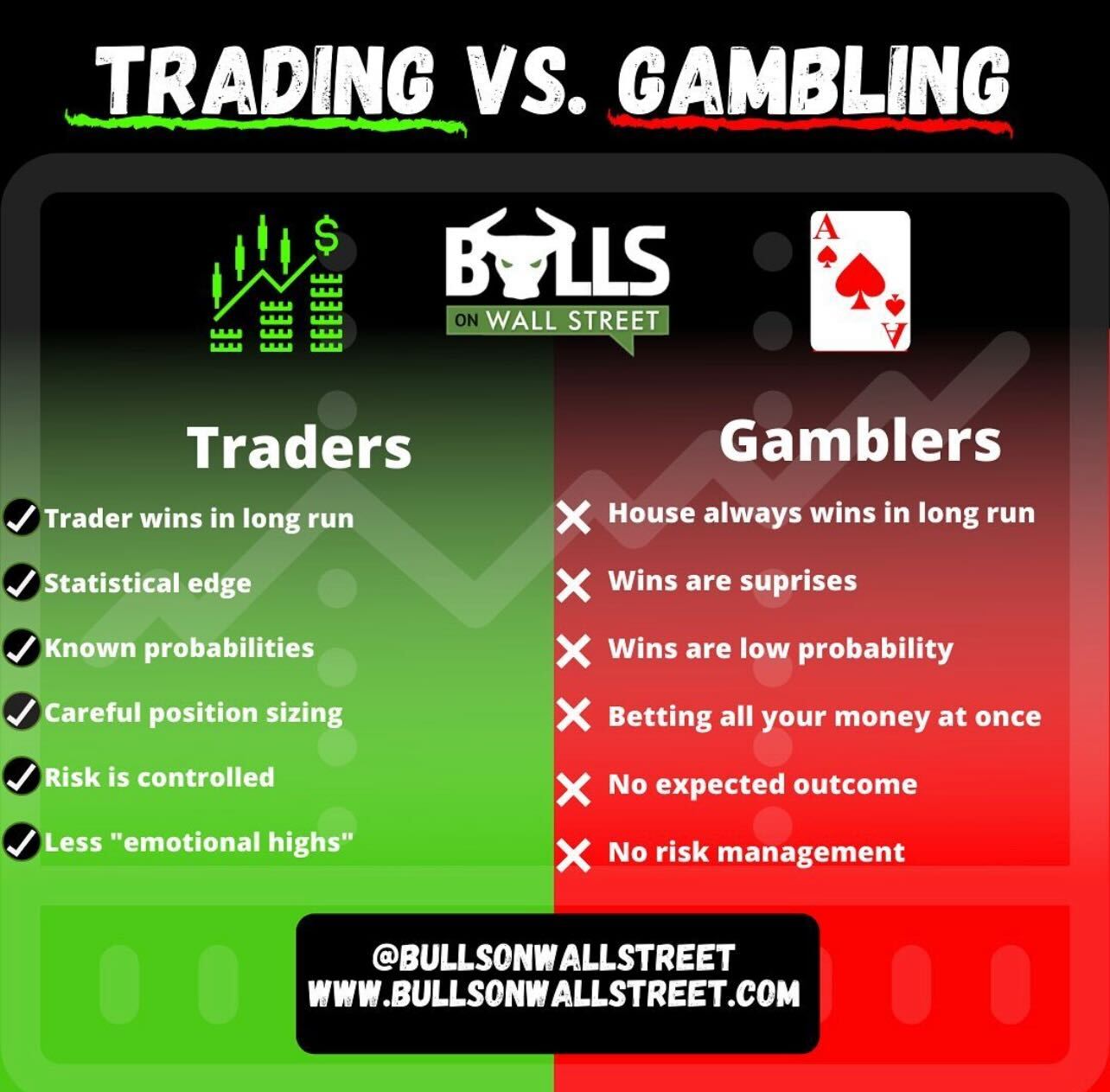 Sure, trading and gambling both have money involved. You could win some, or lose some in an instant, and both involve risk. But that is where the line is drawn.