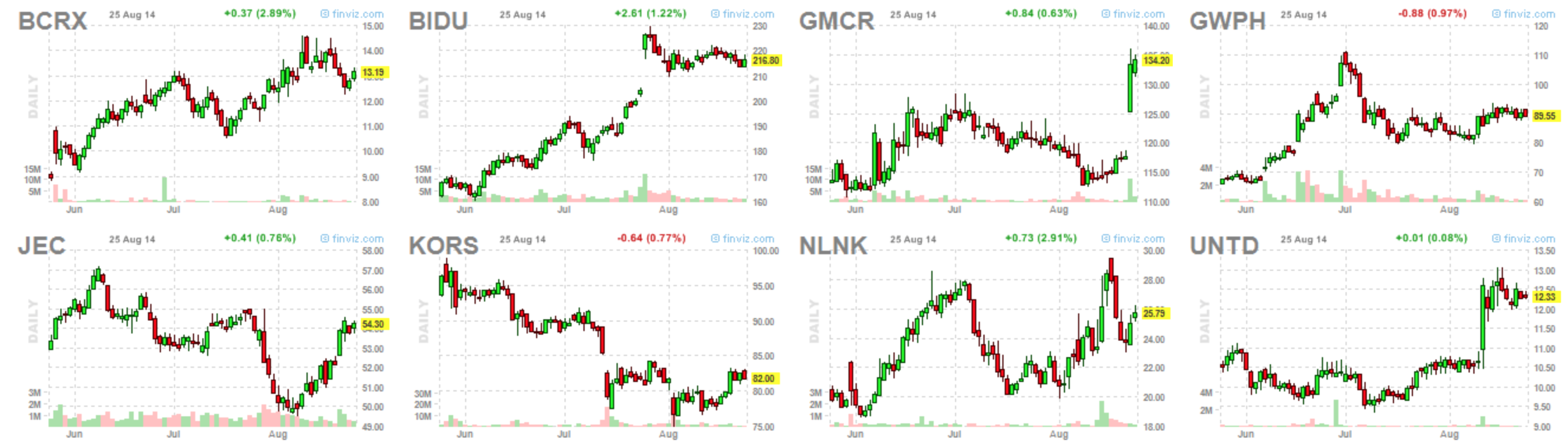 Biotech ETF IBB broke out strong to new highs today. We have a number of biotechs that we are watching, though I know some of you shy away from the volatility of individual biotech stocks. Those who want a somewhat safer route can trade IBB, or for some leverage, BIB.