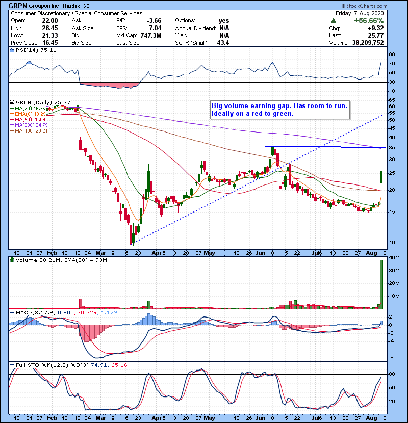 A similar stock that I have on my radar for next week is GRPN. Groupon reports earnings on wednesday of next week. the stock is close to a new high breakout. If the company reports good earnings and the chart breaks out.. this could be another killer ipo trade. Keep that in mind as we see what happens with their earnings! Here is a look at the chart