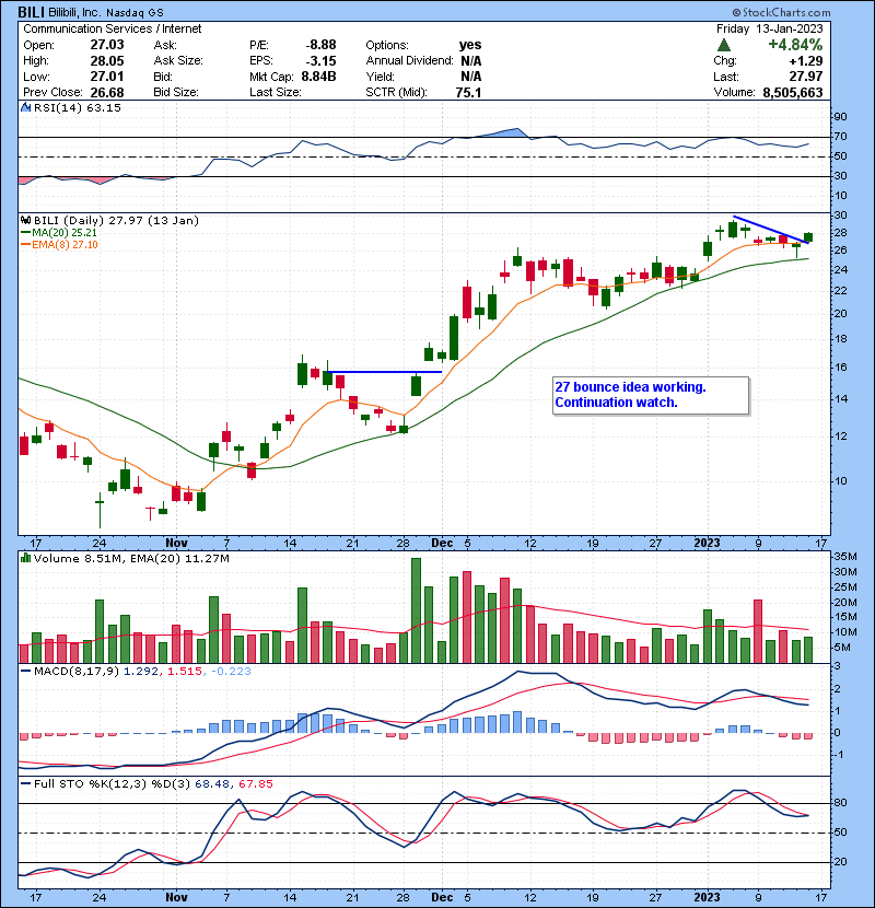 QQQ rally continues, approaching resistance. As long no hard pull, things look good for bulls. PDD, BILI, MARA nice runners from the watch list.