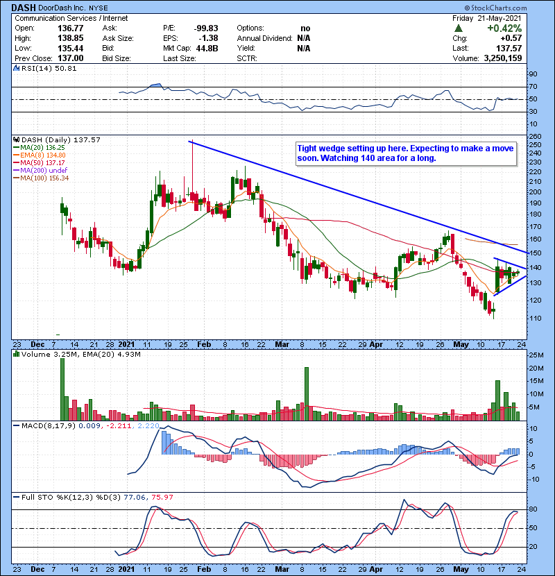 DASH Tight wedge setting up here. Expecting to make a move soon. Watching 140 area for a long.