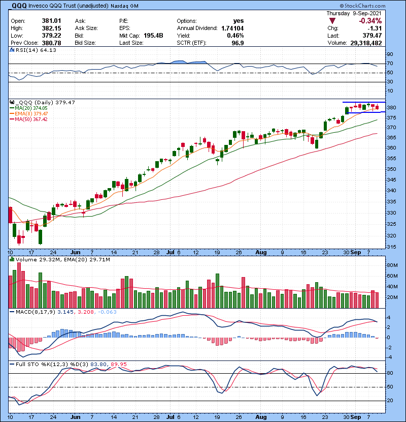 QQQ week long range, might need a test of 20 SMA. Slim picking as far as daily watch list. Mostly watching names from intraday runners scan.