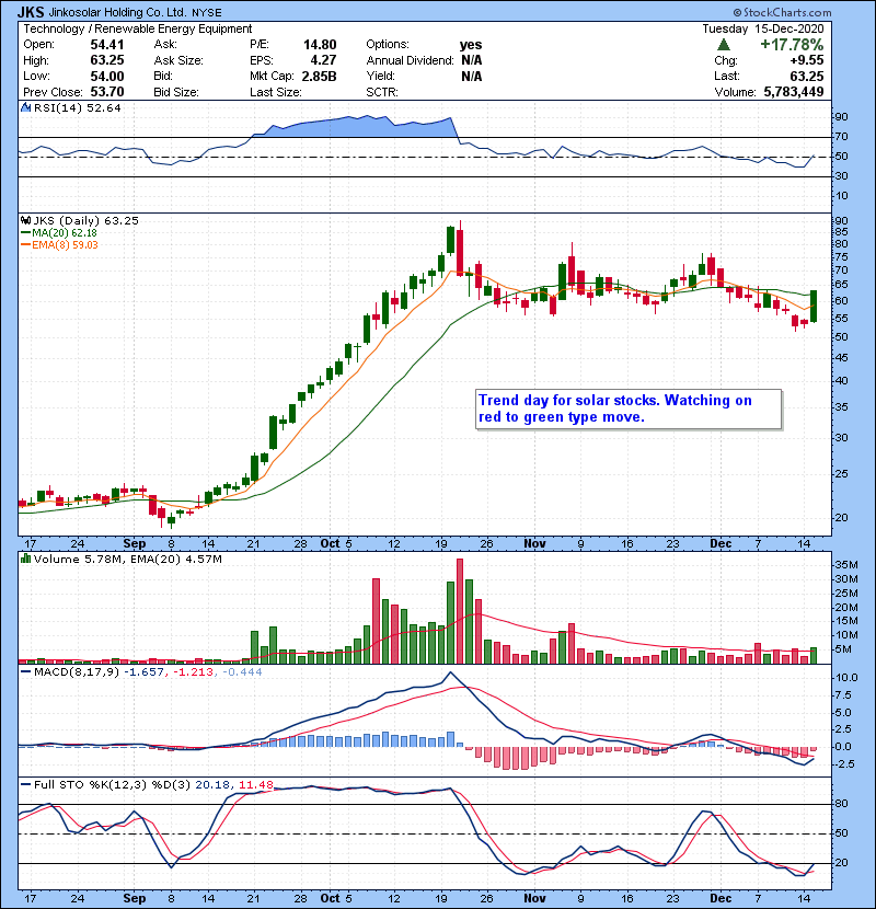 JKS Solar name on sector strength over 5.26 area. FSLR another solar to watch.