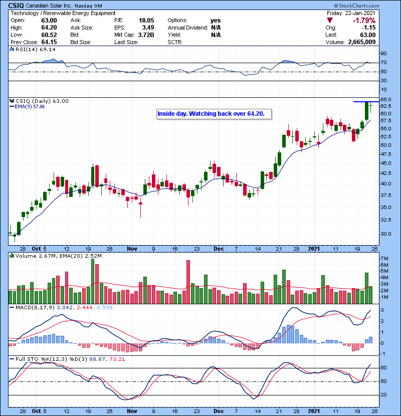 CSIQ Solar stock had a late run today. Watching for continuation. LDS,JKS,YGE also on watch.