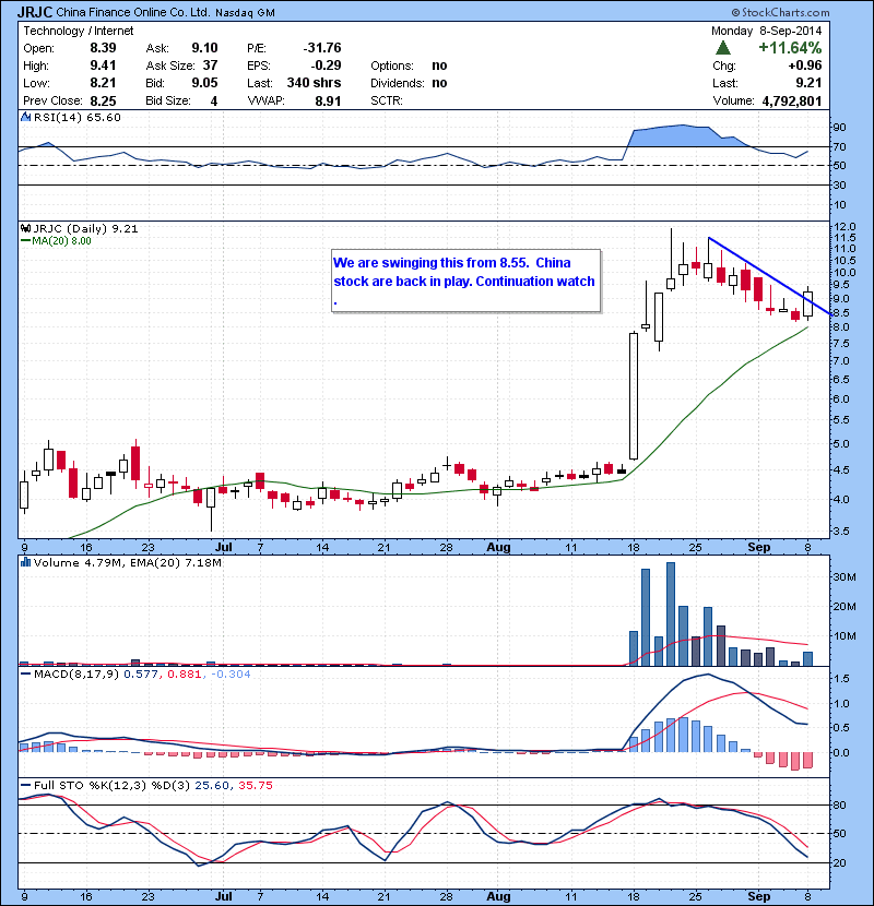 Good thing about consolidation phase in the market is there will be certain sector or group of stocks that will make big runs. It easier to focus on few stock than when everything running at the same time. Today we saw some China name making decent runs. Hopefully it will continue into tomorrow. Decent day in our chat room with real time alerts gaining $4779 for the day ! If you are struggling with your trading or learn how to trade you need to join our 60 day Bootcamp course. Our program is designed in such a way that you come out of it ready to trade live in just 3 months. We teach you everything from risk management to scanning to trading strategies. I also share my profitable intraday trading strategy which will make you money short term regardless of Market condition. The class is one of a kind, see why you should sign up for the course here . You will also have access to a private community where you can ask questions, share charts and talk with the instructors or other traders.