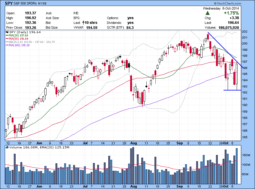Bounce day in the market after a huge sell off once bears managed to took out that 100 MA , as we wrote about in the last blog post. However, market manged to hold the low from October 2nd, thus creating a short term double bottom pattern which triggered a short covering rally today.