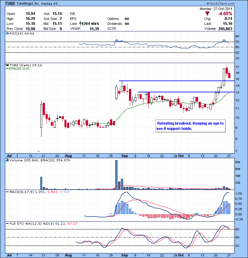 TUBE Retesting breakout. Keeping an eye to see if support holds.
