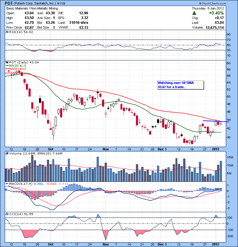 POT Watching over 50 SMA 43.67 for a trade.