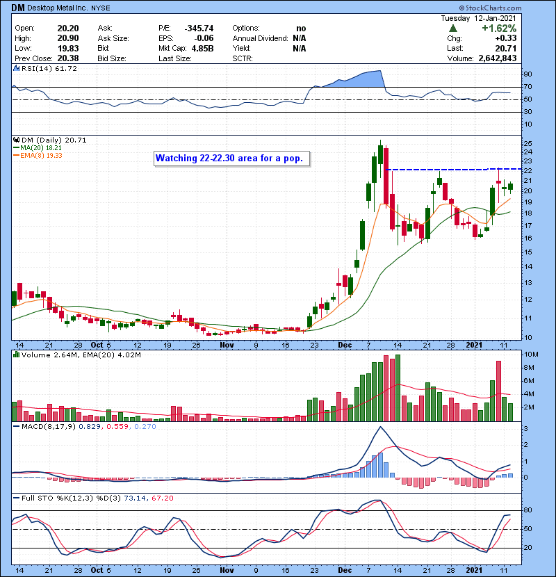 Market getting a bit extended . Doesn’t mean anything as extended can stay extended and SPY, IWM, QQQ still has room to top of the Boilinger Band. Tomorrow we also have FOMC meeting at 12.30 ET. It is becoming harder to find names that hasn’t moved yet so I am posting few names that still have a bit of room to run and heavily shorted.